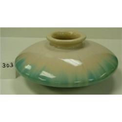 Squat satellite vase. Made in Brazil. Marked and signed on bottom. White to blue glaze. 3.5" tall, 8.5" wide. Condition: Excellent