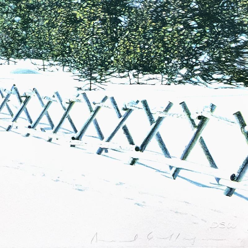 "Squaw Valley" is a limited edition lithograph on paper by David Gallegos, numbered 98/150 and hand signed by the artist. Includes Letter of Authenticity. Measures approx. 25" x 35.5" (image). There are some minor creases on the paper.