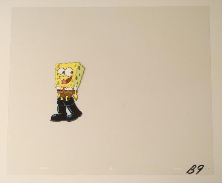 This original animation cel is from the Nickelodeon TV show SpongeBob Squarepants. The story takes place under the deep blue sea in Bikini Bottom, where SpongeBob resides. SpongeBob, who is a yellow, porous sponge, is your typical happy-go-lucky character, as he is always cheerful and enjoys making people laugh. Patrick Star, SpongeBob's neighbor who is a starfish, is your average children's show idiot, as he boasts knowing nothing and is often getting himself into ridiculous situations. Between the homes of these two lies the home of the miserable Squidward, a squid, who is known for being grouchy and playing tricks on SpongeBob and Patrick. Both SpongeBob and Squidward work at the Krusty Krab, a fast food business run by the greedy money-loving Mr. Krabs, a crab, the arch rival of the evil, possibly misunderstood, Plankton. Another neighbor, Sandy Cheeks, an athletic squirrel who normally wears an astronaut's space suit, was introduced in "Tea at the Treedome." She spends most of her time inventing and experimenting. * Squeaking black boots * Original Production Animated Cel Overall Size of Cel: 10 1/2" x 12 1/2" Very Good Condition This is an original hand-painted cel set-up used in the production of an episode of "SpongeBob SquarePants." Each one-of-a-kind set-up represents a slight change in position of the characters. When individually photographed and projected in rapid succession, the images appear to move. * To create production cels, the original animator's drawing is transferred onto an acetate cel (by hand-inking and/or photo copying). The cel is then hand-painted on the reverse side. * The cel is ready to be matted and framed. The animator's notations are at the bottom of the cel. *