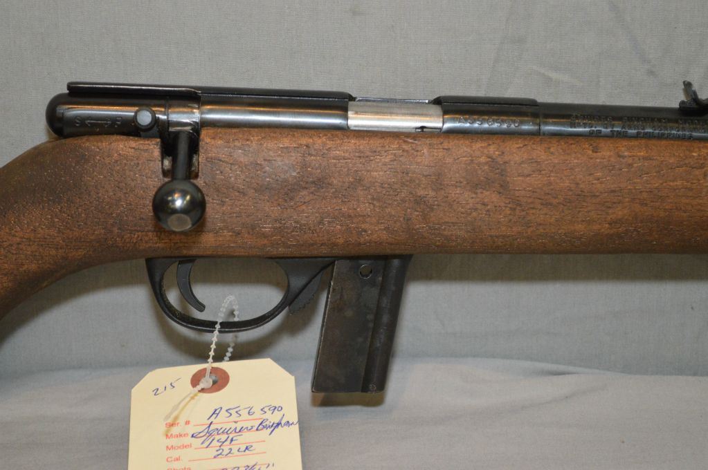 Squires Bingham Model 14F .22 LR ONLY cal Mag Fed Bolt Action Rifle w/ 22 3/4" bbl [ blue finish, missing front sight, sanded pistol grip stock w/ AP butt plate, (174 ) ] Ser # A556590