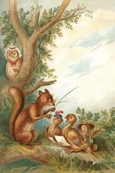 Finish: Gallery WrappedSquirrel Teaches Ducks at School under the bough of atree with an owl