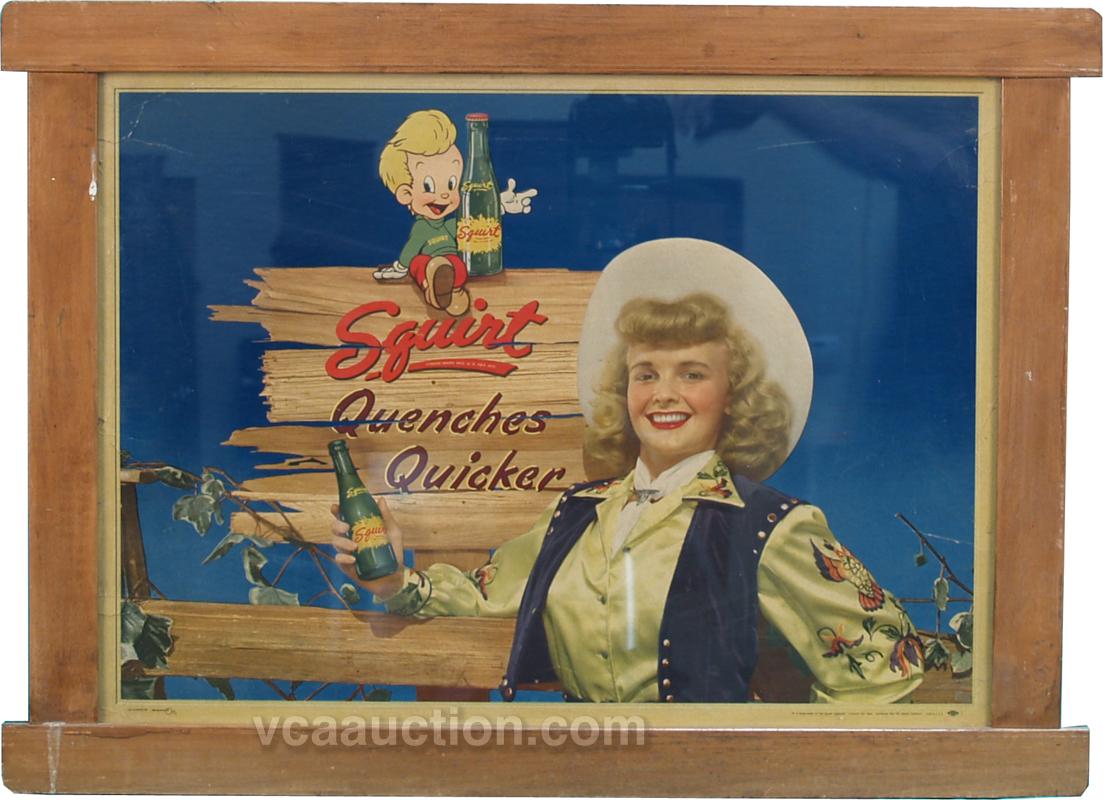 Squirt Cardboard Advertising Sign, "Quenches Quicker" in frame - 28" x 22"