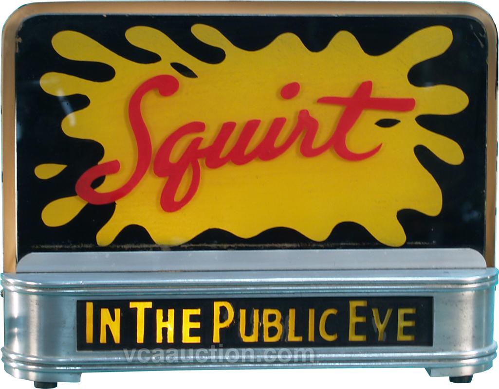 Squirt Metal & Glass Countertop Light-Up "Halo" Sign, "In The Public Eye" MFG by Price Brothers Inc. New York, works