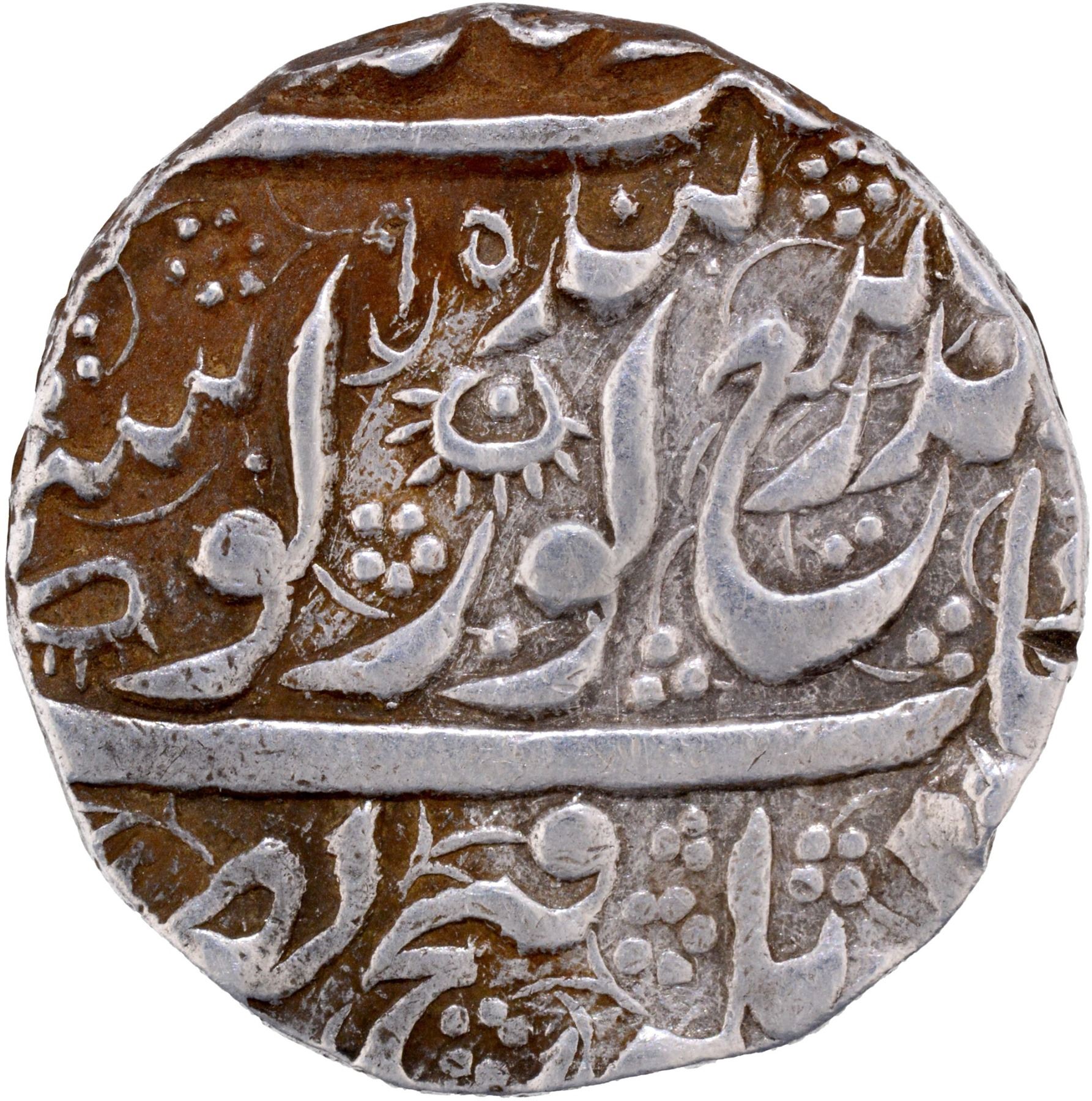 Sikh Empire,Ranjit Singh (VS 1856-1896 /1799-1839 AD), SriAmritsar,Silver Rupee, VS1884 /95, later Gobind Shahi series, 1st issue of frozen year series,Gobind Shahi Couplet,Obv:Persian legend deg Fateh-o nusrat be-dirang, yaft az Nanak Guru Gobind Singh,Rev:Persian legend zarbSri Amritsar at the top,Bakht Akal Takht memanat julus manus with leaf symbol,10.97g, 23.63mm,(Gurprit # 1.81.01),about extremely fine,Very Scarce.