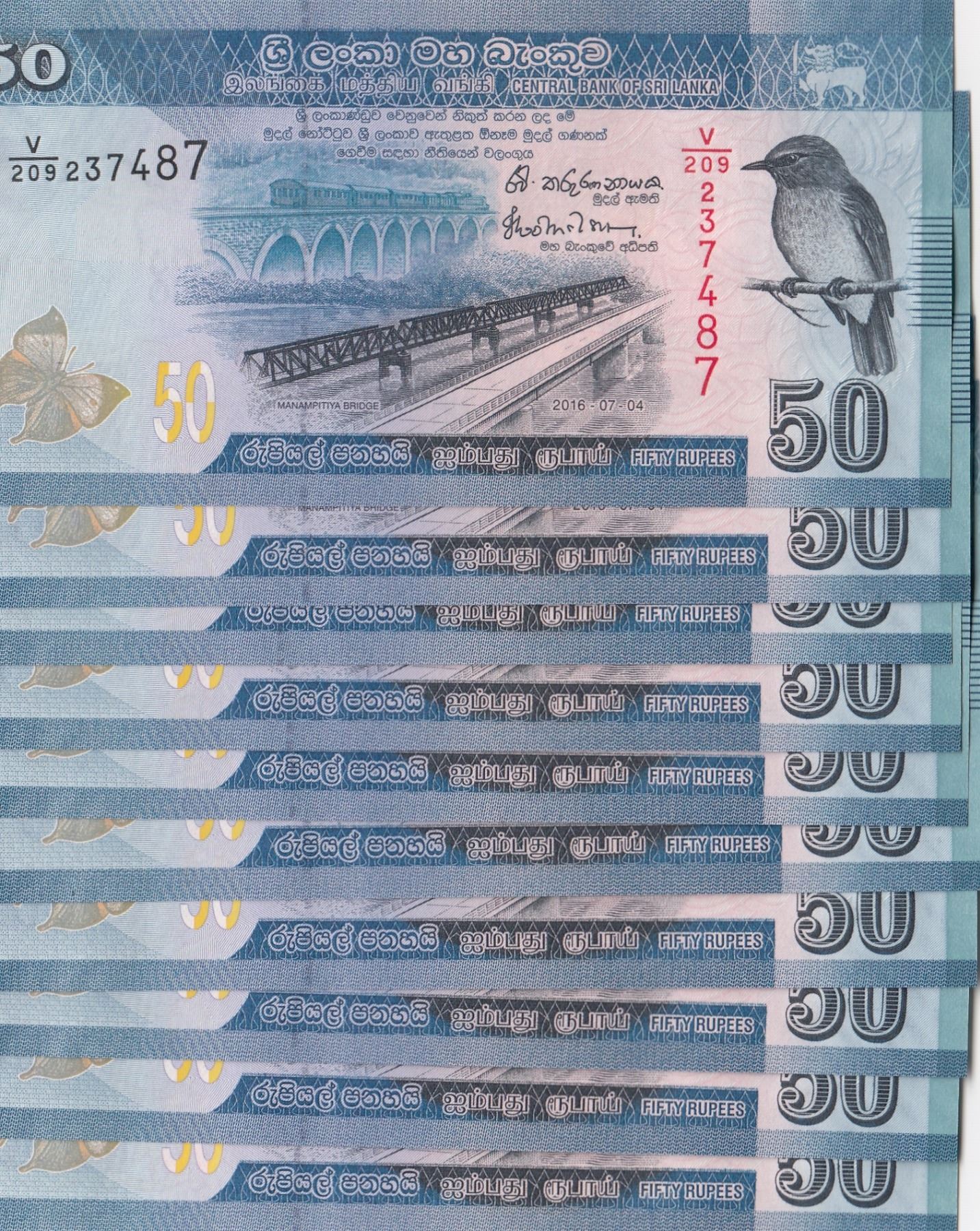 Sri Lanka, 50 Rupees, 2016, UNC, p124d, (Total 10 consecutive banknotes)br/serial numbers: V/209 237