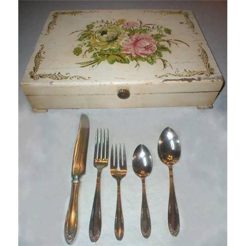 This antique silverware box is so shabby chic and sweet! You'll never find another one like it!</em></td>