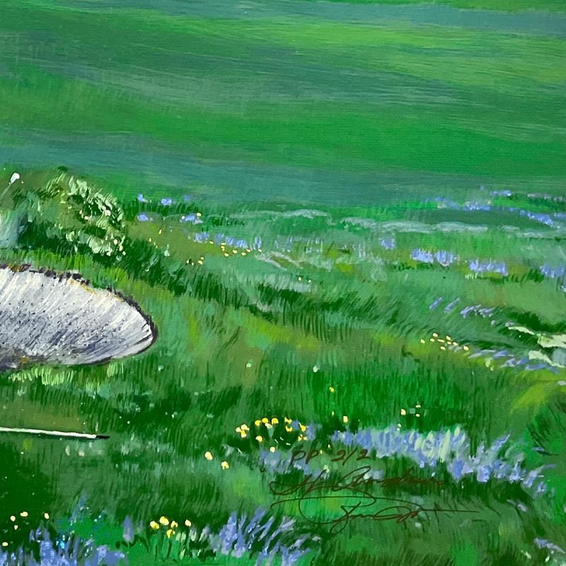 "St Andrews" is a limited edition printer's proof serigraph on canvas by Ruth Mayer (1934-2023), numbered 2/2 and hand signed by the artist. Includes Letter of Authenticity. Measures approx. 26.5" x 40" (image).