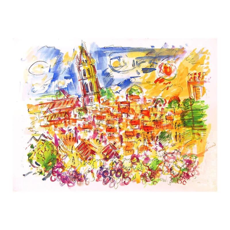 "St Emilion - 2" is an original Mixed Media on Paper by Wayne Ensrud. The piece is hand signed by the artist and comes with a Certificate of Authenticity. Measures approximately 22" x 30".