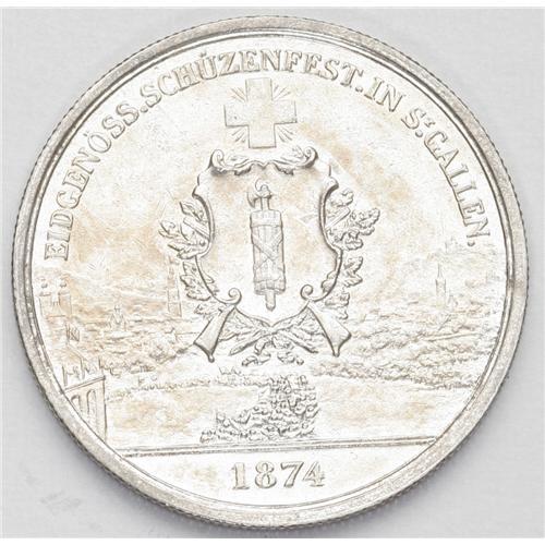 St Gallen 5 Francs Shooting Taler 1874, KM-S12, Uncircu St Gallen 5 Francs Shooting Taler 1874,