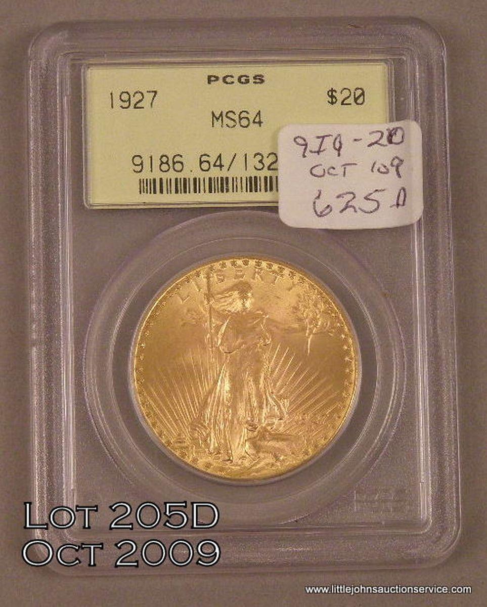 St. Gauden’s Twenty Dollar gold piece dated 1927 PCGS graded MS64 in slab. Est.: $900-$1,200.