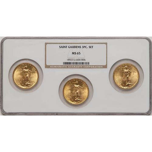 Includes: 1925, 1926, 1927 $20 Double Eagles. Gem uncirculated with bright golden luster.