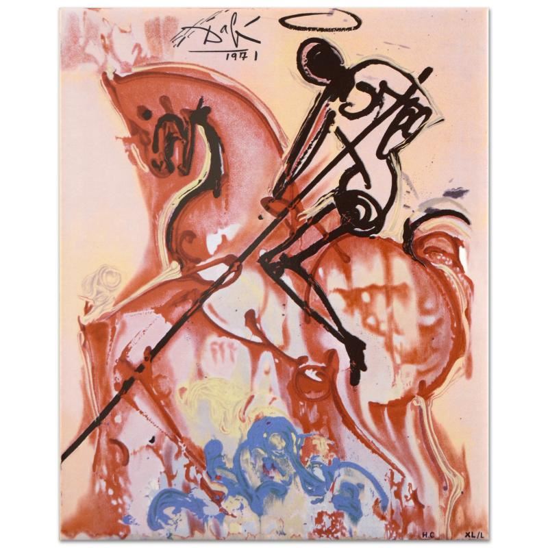"St. George and The Dragon" is a limited edition glazed ceramic tile from a SOLD OUT edition by Salvador Dali (1904-1989), numbered and plate signed! Measures approx. 8" x 10" (tile).