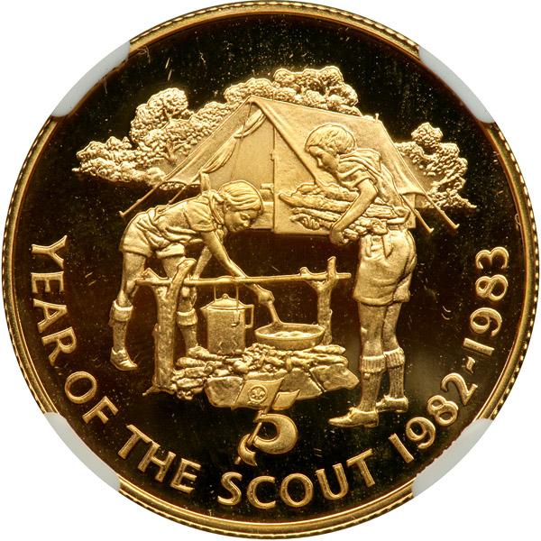 St. Helena. 2 Pound, 1983. Fr-1; KM-11. Weight 0.4711 ounce. Mintage 2,000. Elizabeth II. International Year of the Scout. NGC graded Proof 69 Ultra Cameo.