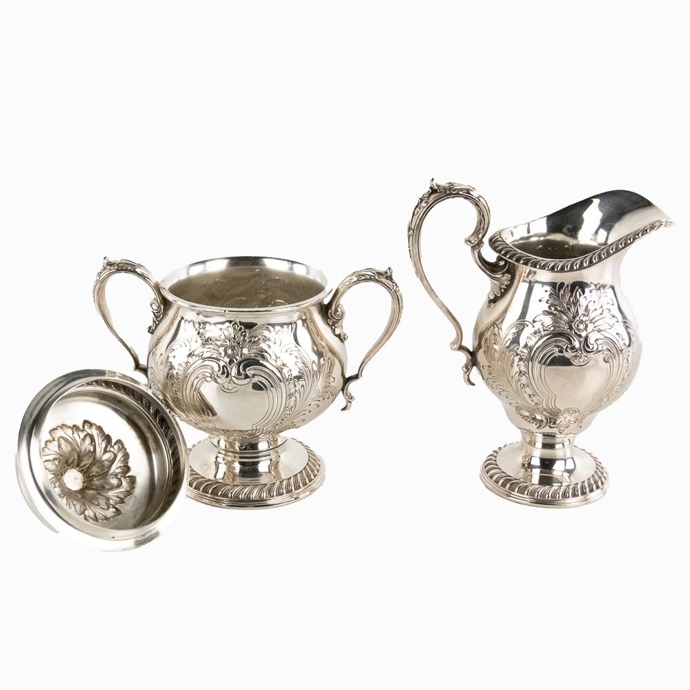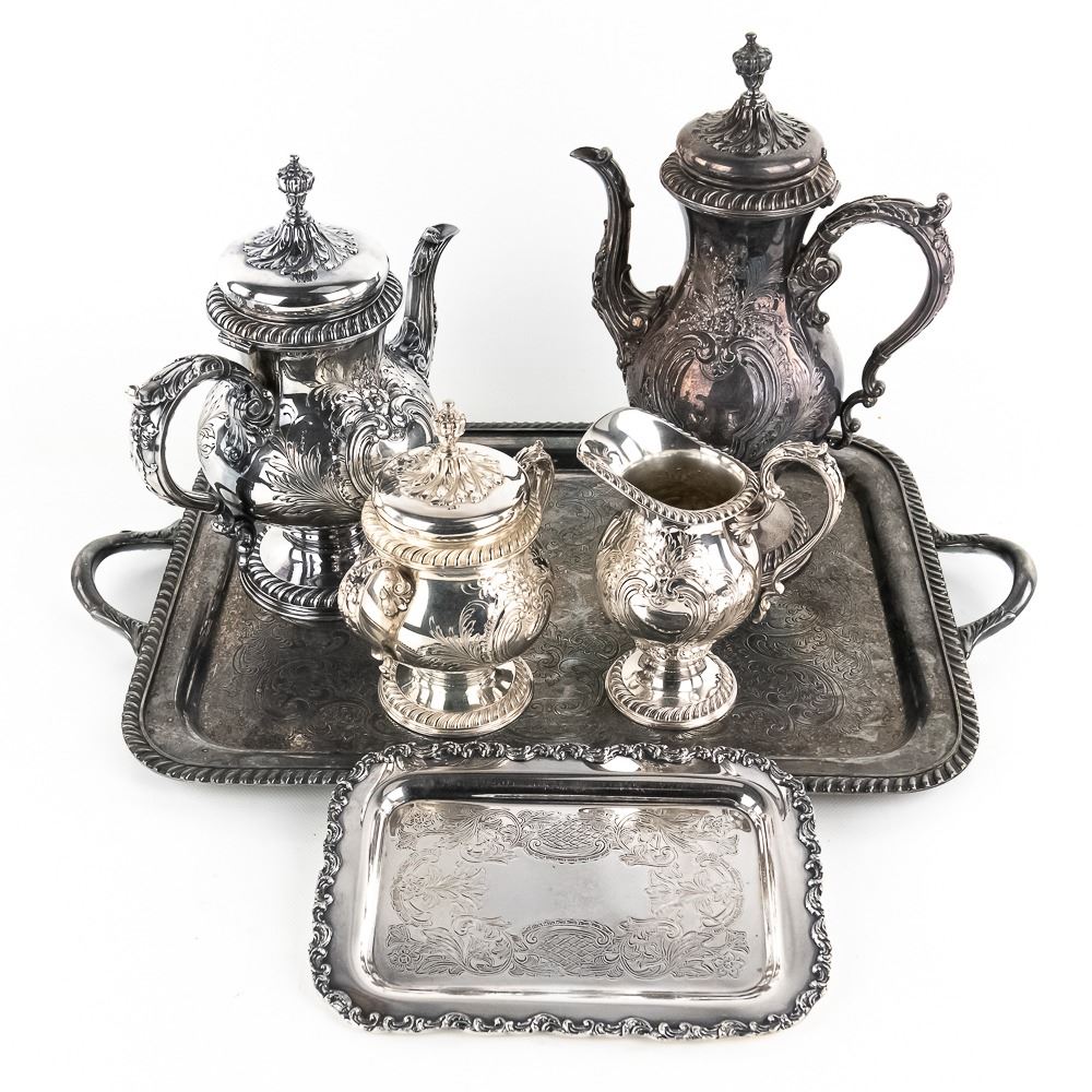 Includes 2 tea / coffee pots, creamer & sugar, and serving tray all in VG condition. Comes with smaller unknown makes tray.