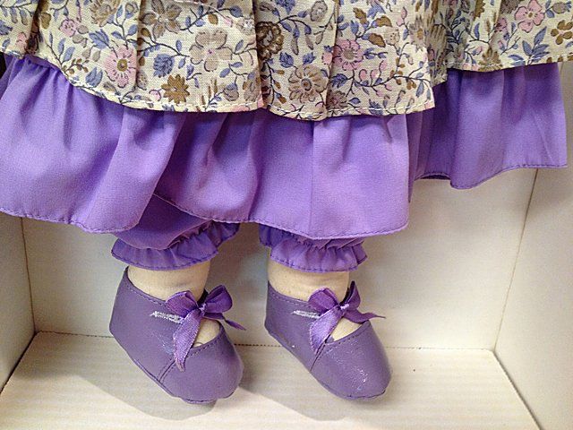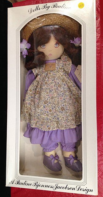 To Benefit St. Jude Children's Research Hospital; A Pauline Bjonness-Jacobsen Design Doll, fabric doll with hand painted face, purple flower country dress and straw hat, measures approx. 19" tall, in original box. Owner reportedly paid over $200 for this doll when originally purchased.This doll is being auctioned to benefit St. Jude Children's Research Hospital. We have been collecting for St. Jude Children's Research Hospital since the passing of Peter W. Chapulis, in his memory. We are proud to announce that we have raised $57,500.00 to date for St. Jude Children's Research Hospital! We thank all of our loyal customers for helping to make this happen! This is your opportunity to give a child or doll collector a wonderful collector's doll and give to the children of St. Jude Children's Research Hospital at the same time!