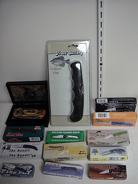 To Benefit St. Jude Children's Research Hospital; 13 Knives including 12 pocket knives, each in original box, 1 is nice collector's knife, and Frost Cutlery Crappie Filet Knife, never been opened! This lot is being auctioned to benefit St. Jude Children's Research Hospital. We have been collecting for St. Jude Children's Research Hospital since the passing of Peter W. Chapulis, in his memory. We are proud to announce that we have raised $57,500.00 to date for St. Jude Children's Research Hospital! We thank all of our loyal customers for helping to make this happen! This is your opportunity to give a great gift and give to the children of St. Jude Children's Research Hospital at the same time!