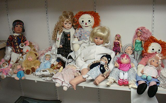To Benefit St. Jude Children's Research Hospital; Doll collection lot including bisque porcelain collector's dolls, Barbie, and Raggedy Anne dolls. These dolls are being auctioned to benefit St. Jude Children's Research Hospital. We have been collecting for St. Jude Children's Research Hospital since the passing of Peter W. Chapulis, in his memory. We are proud to announce that we have raised $57,500.00 to date for St. Jude Children's Research Hospital! We thank all of our loyal customers for helping to make this happen! This is your opportunity to give many children a wonderful doll and give to the many children of St. Jude Children's Research Hospital in need at the same time!