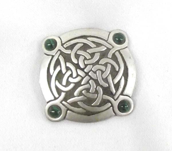 St. Justin Celtic Pewter Pin with Malachite Beads. Measures approx. 2'' x 2''. Hallmark of St. Justin Pewter. Buyers Pay Actual Shipping and Handling Charges(see terms and conditions for more information).