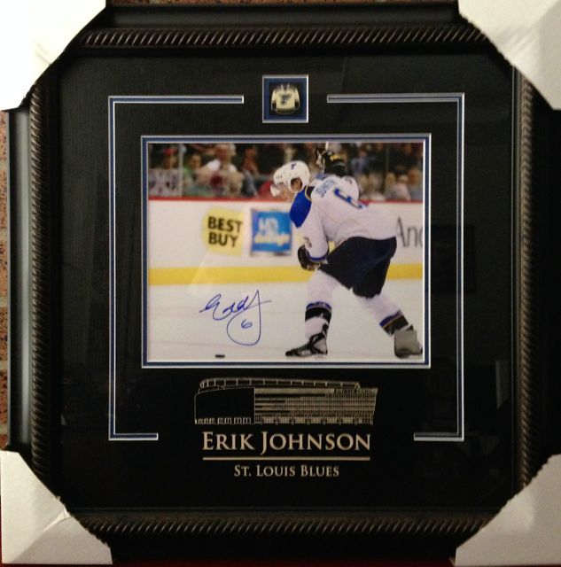 St. Louis Blue Erik Johnson Signed Photo with Etched Mat, Pin Framed