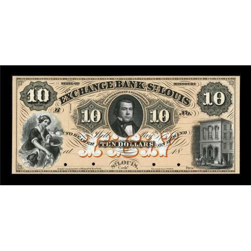 <B>St. Louis, MO- The Exchange Bank of St. Louis</B></I> $10 18__ G44a Proof<BR> This is a beautiful fully orange tinted Proof example formerly of the ABNCo archives. Before this auction in the early 1990s, this design was listed as "SENC" in Haxby. <B>Choice Crisp Uncirculated,</B></I> 4 POC.<BR><BR><b>Shipping:</b> Coins & Currency (<a target="_blank" href="http://www.heritageauctions.com/common/shipping.php">view shipping information</a>)