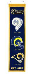 These uniquely shaped vertical banners chronicle the evolution of select logos or mascots through the years. Each logo is identified with a circa date connecting each to a specific time period. Each banner is constructed with appliqué and embroidery detail on a heavy wool blend fabric, providing a vintage feel and look. Each banner measures 8" wide x 32" long and includes a hanging cord for easy display.. Made By Winning Streak Sports