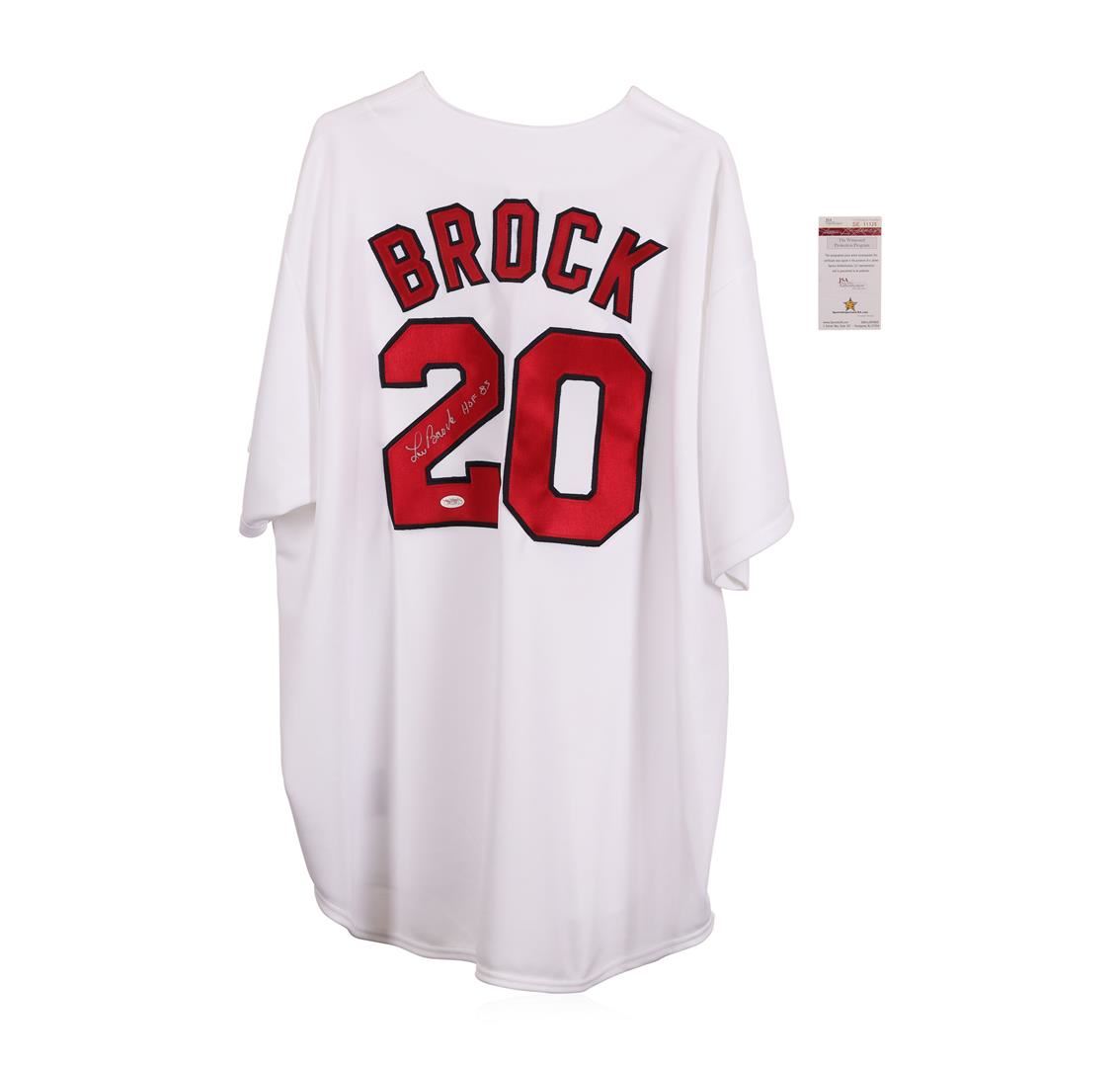 One St. Luis Cardinals Lou Brock Autographed Jersey. Comes with Certificate of Authenticity.