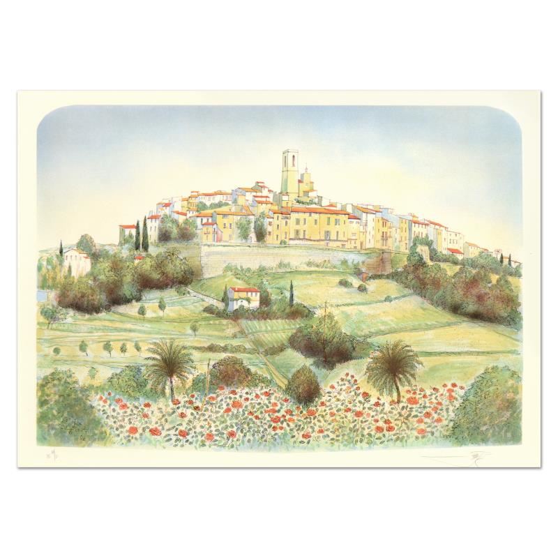 "St. Paul De Vence" is a limited edition lithograph on paper by Rolf Rafflewski, numbered and hand signed by the artist! Measures approx. 29.5" x 21" (border). 27" x 20" (image).