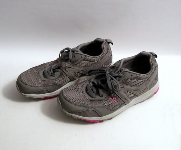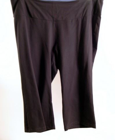 Maggie (Melissa McCarthy) screen worn, hero, navy blue cotton crepe with yellow, turquoise, and white embroidery trim 'Lucky Brand' blouse, navy cotton soft slight v-neck with built extension 'Charter Club' top, black yoga capri length wide elastic band 'Style & Co' pants, and grey laced track with pink accents 'Olukai' sneakers. (size 8) Includes wardrobe tag!