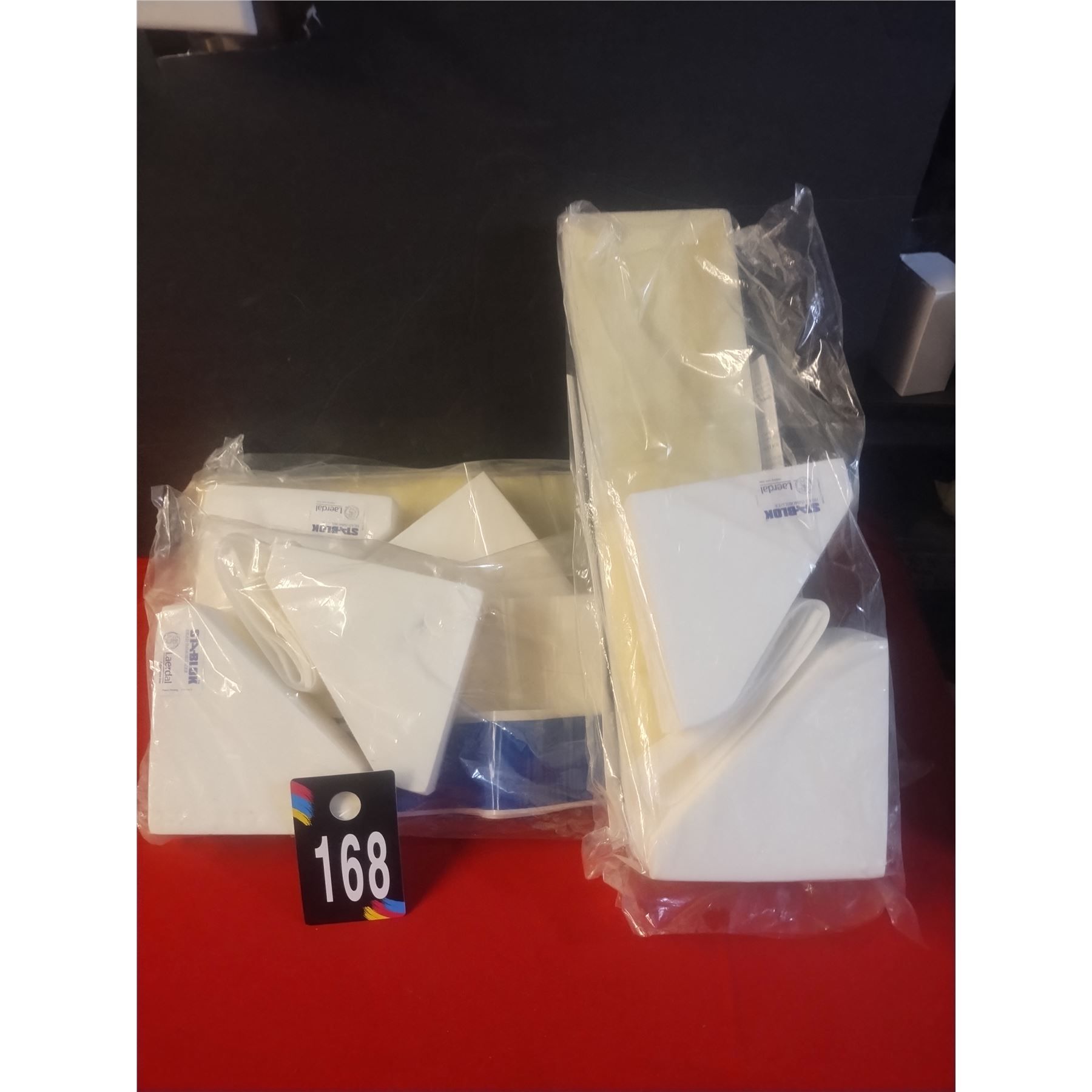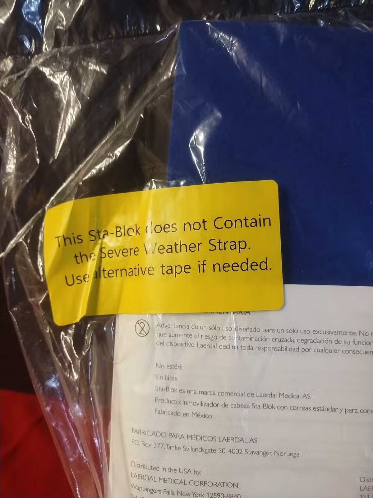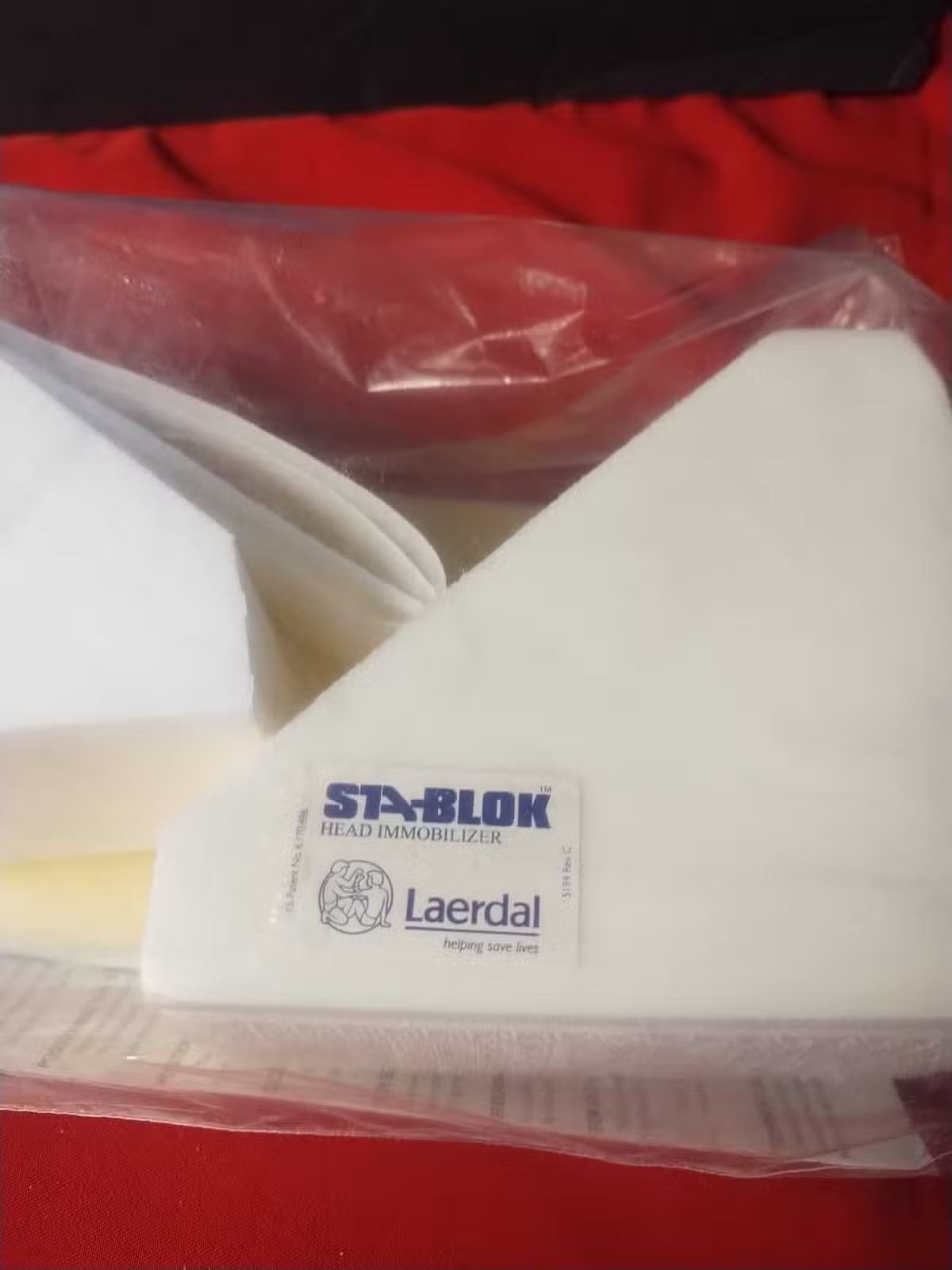 Brand new lot of 3 still sealed Sta Blocks for holding your held to a backboard of a stretcher. These came from a film/tv set lot.