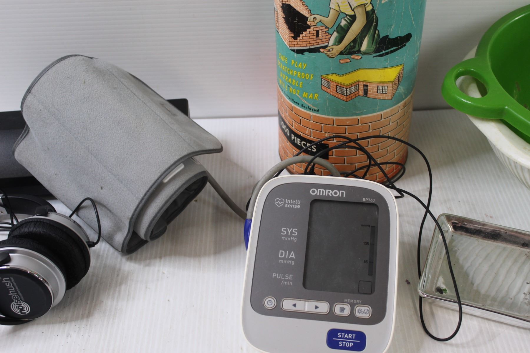 Sta-Loz Mini Building Blocks Set - as is, Headphones, (2) Plastic Strainers, Planter, Blood Pressure Machine - May Need Batteries