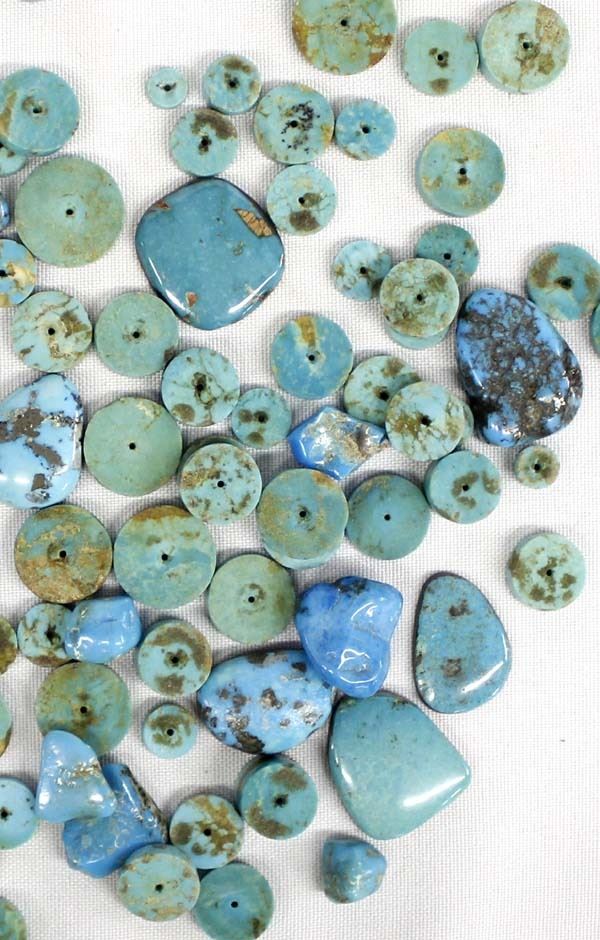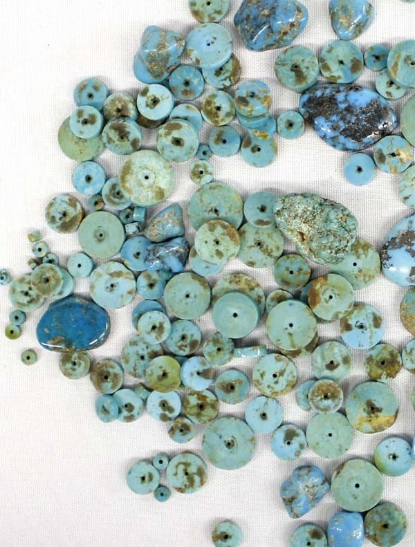 Stabilized & Natural Turquoise Cabs and Heishi Beads, largest measures 1.25''L