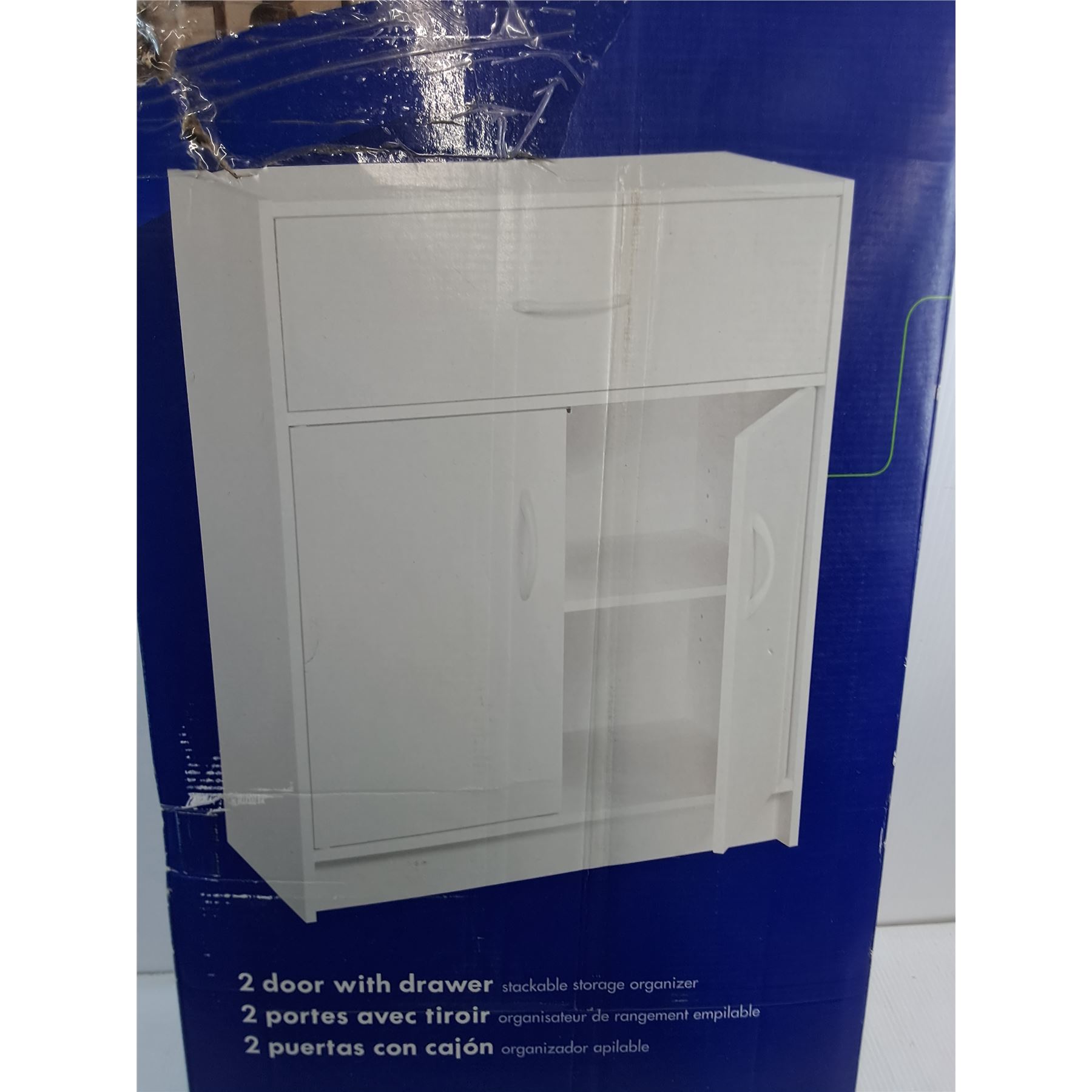 Stack-A-Shelf 2-Door w/Drawer Storage Organizer - Unopened , Some Box Damage - PU Only