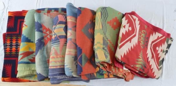 Stack of Vintage Western Blankets & Rug