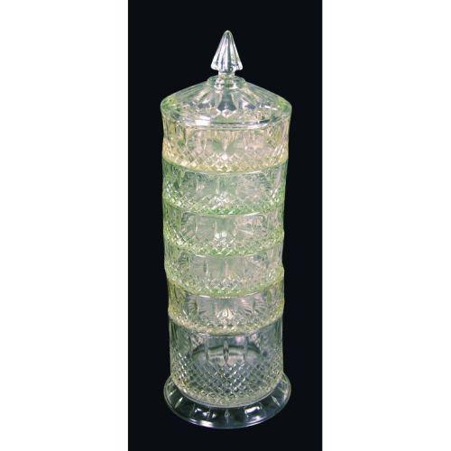 Stacking Pressed Glass Candy Jar, Six sections. Some rim chips, otherwise good condition 19 inches tall.