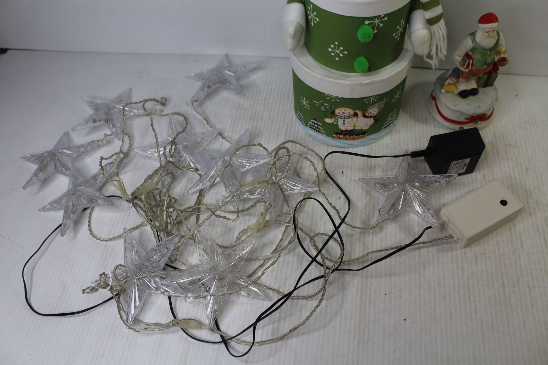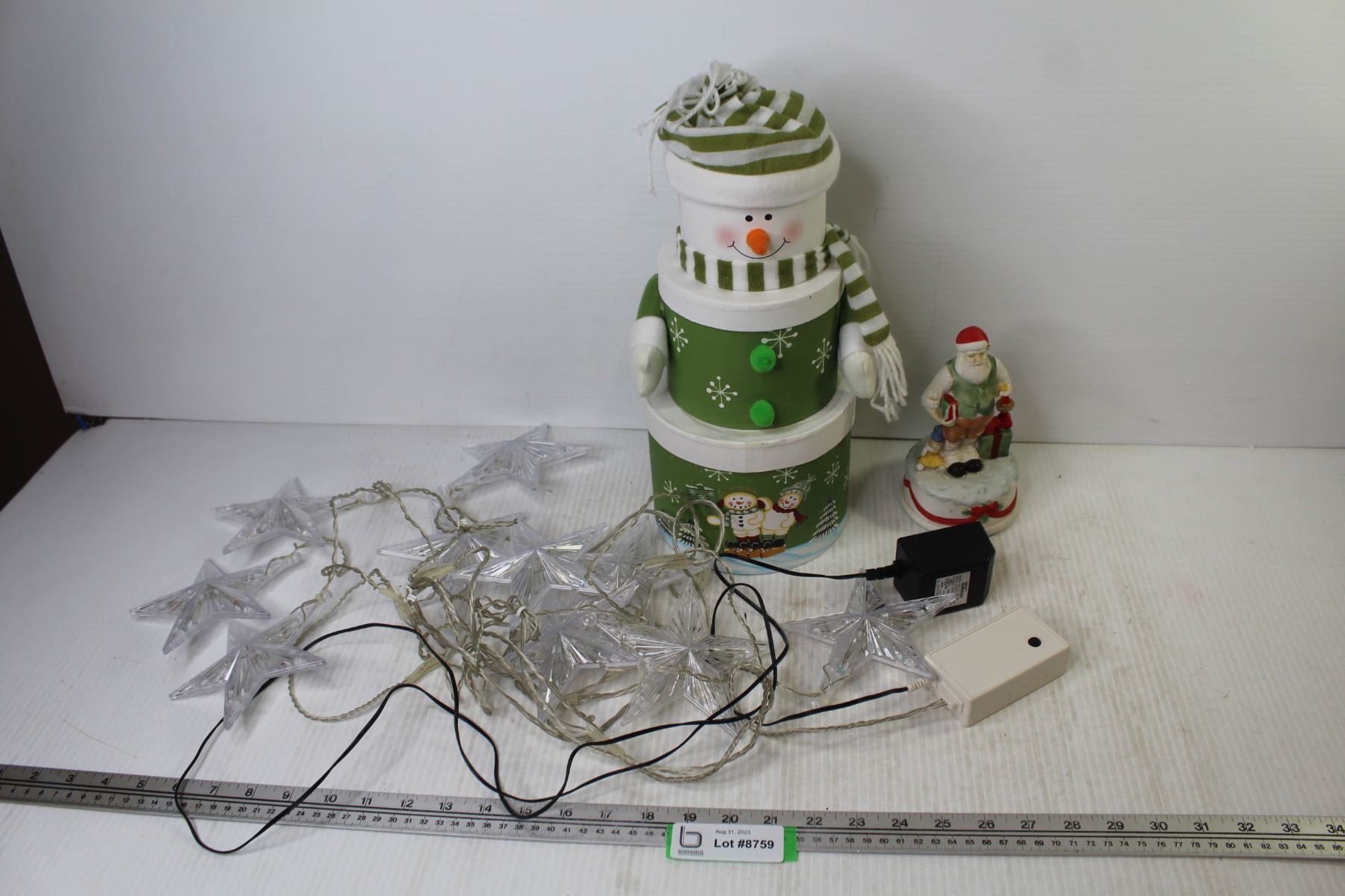 Stacking Snowman Gift Box - Ceramic Musical Santa (working) - Star String Lights (most light up)