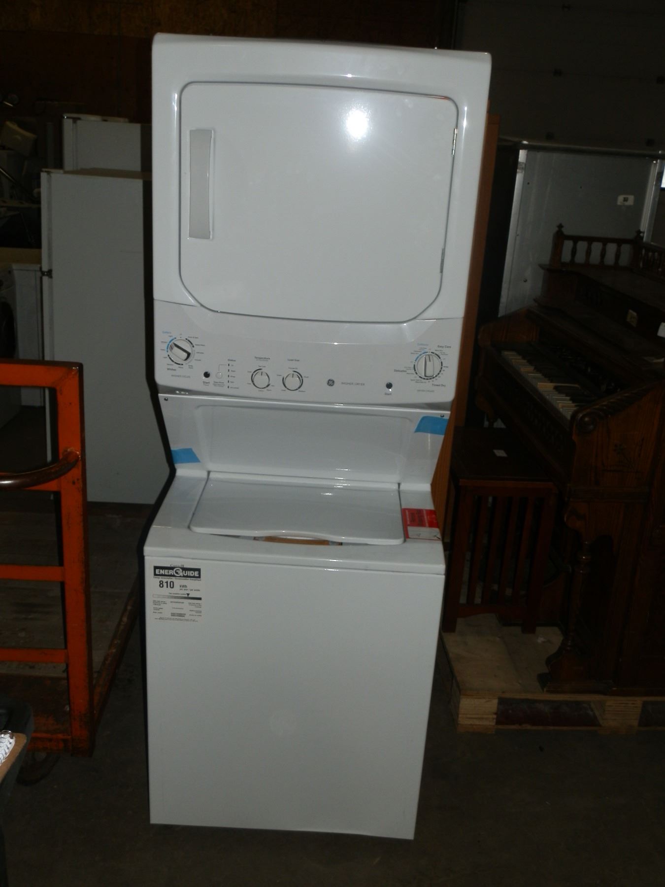 G E Stacking Washer & Dryer new just a little damage on the bottom as seen in the photos, stainless steel inside both the washer and dryer....NEW
