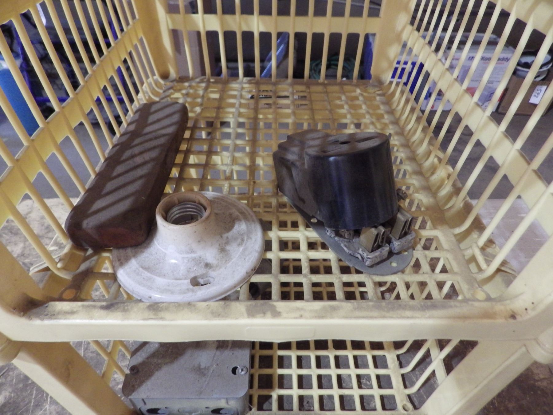 Stacking baskets with electric parts Etcetera.