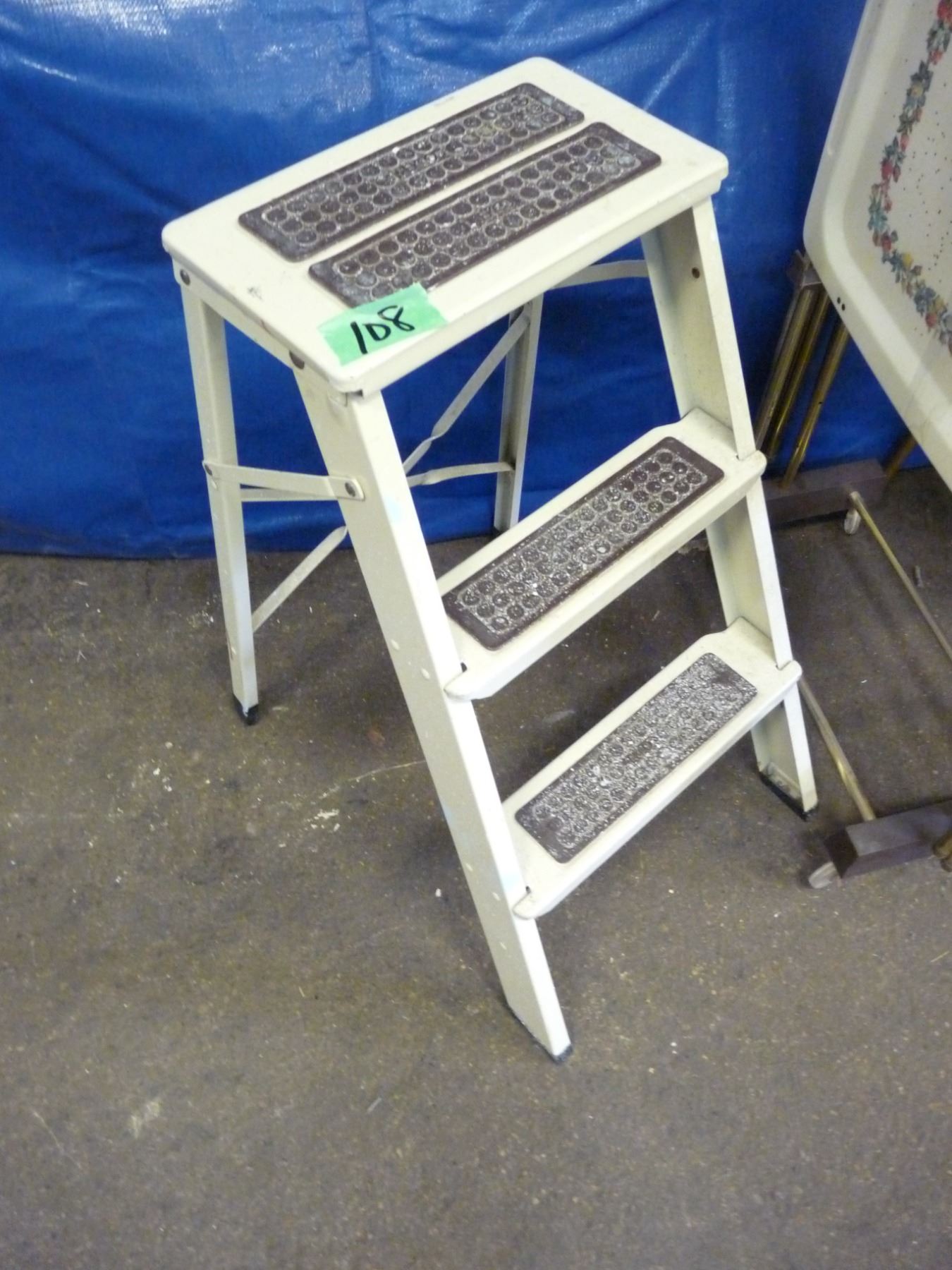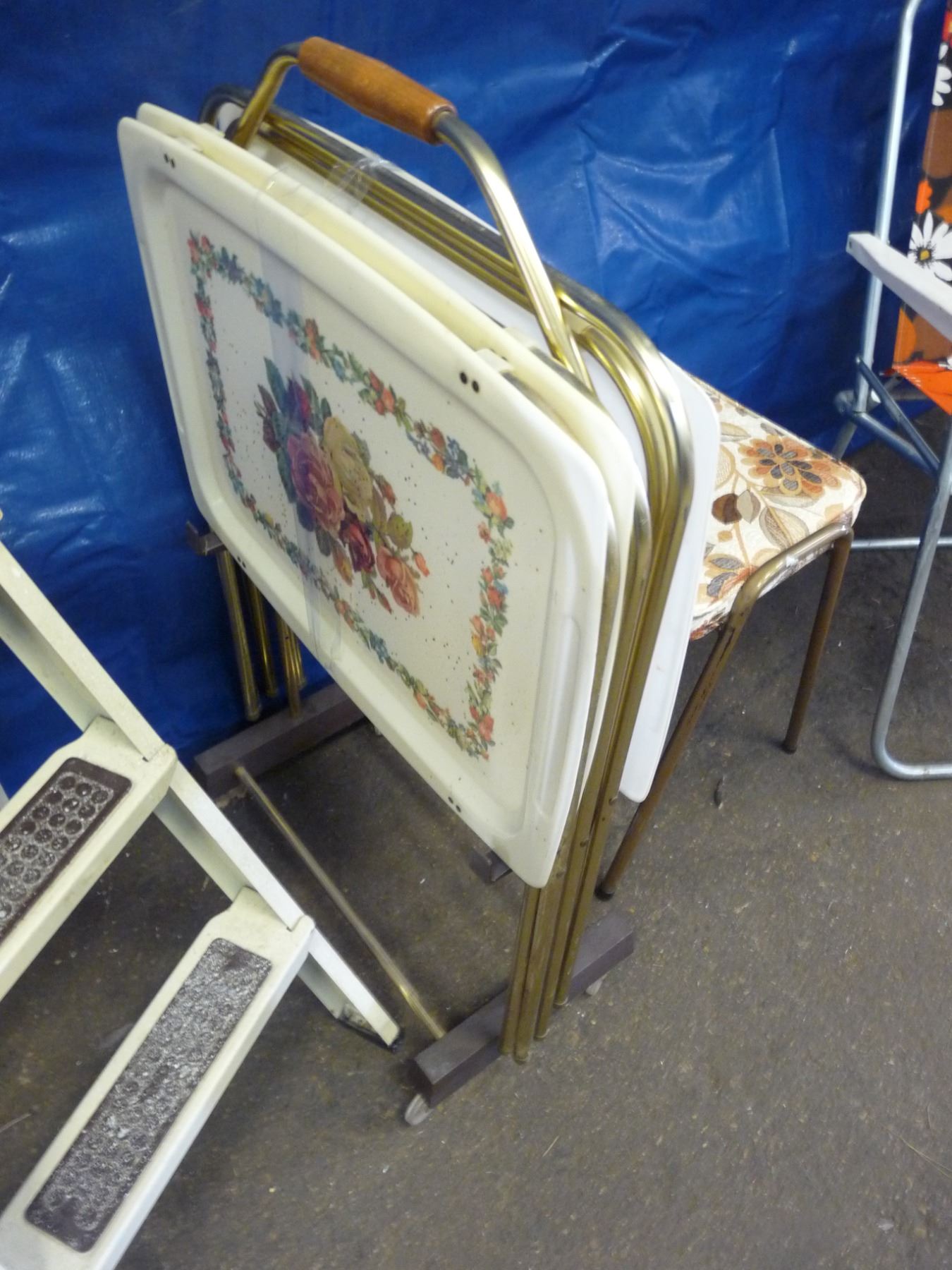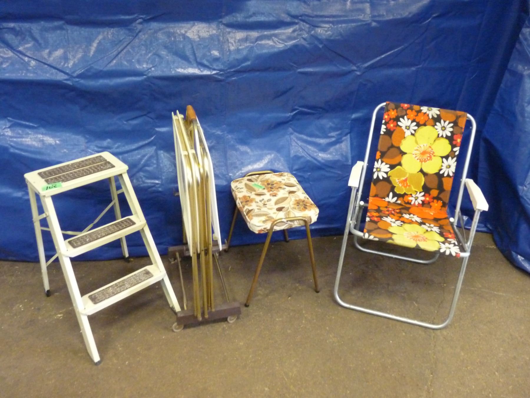 Stacking stool and folding two step ladder, TV trays, lawn chair