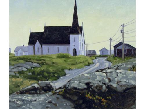 [Canadian FCA 1914-active 2000) WITHIN A GULLS CRY OF THE SEA (PEGGY'S COVE N.S.) Oil on board 12 x 14 ins. Signed & titled