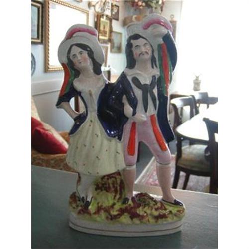 Beautiful Old Staffordshire Couple Figurine Group c.1870's. This piece is in great condition free of chips/repairs. Nice old piece!! These flatback pieces were made to be seen from the front, with an flat unmolded back.