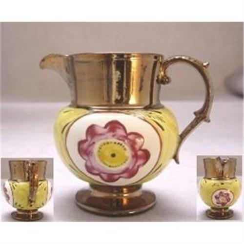 </font></strong> Staffordshire Pottery Small Milk Jug Yellow And Copper Lustre