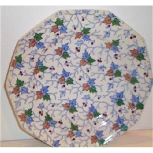This very lovely and stunning Transferware Plate is decorated with leaves of blue and light beige and sprinkled with red berries. The plate is octagonal in shape and was made in England by one of the Staffordshire potteries. The plate is in SUPERIOR condition with no chips, cracks, dings or hairlines and it measures 9.75" in diameter. It is unmarked on the back but definitely English and Staffordshire.