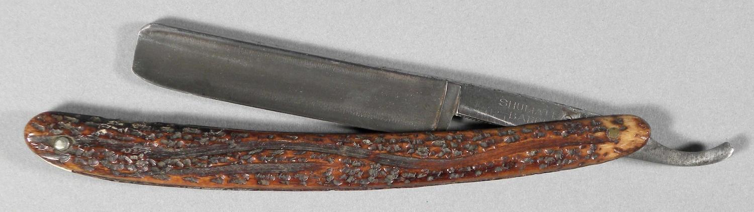 Stag Handled Straight Razor. Shumate Barber/Shumate Razor Co. St. Louis, MO. Excellent condition. Start Price $70