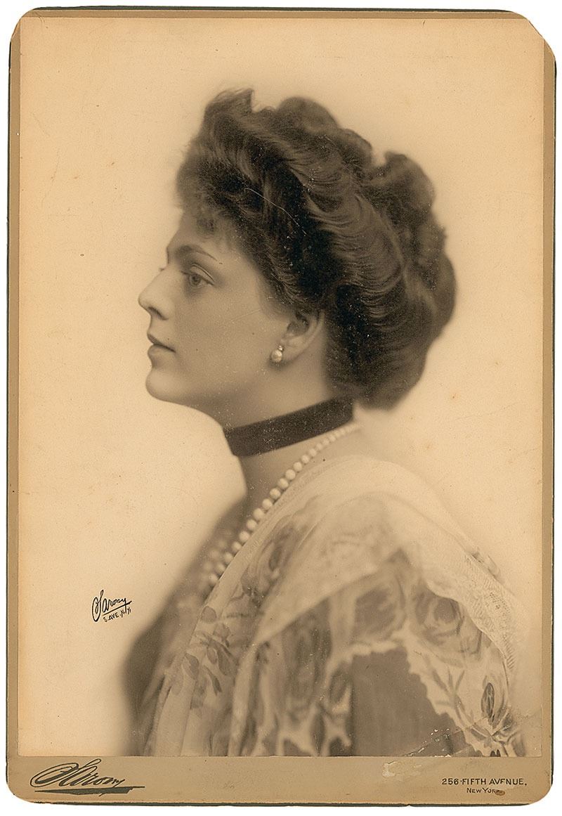 Collection of three signed cabinet photos and an unsigned imperial cabinet photo, including: a cabinet photo of Edward Loomis Davenport, signed and inscribed in ink; a cabinet photo of Henry Irving in character as ‘The Vicar’ in Olivia, signed in ink; a Sarony cabinet photo of Richard Mansfield, signed in ink; and a 9.5 x 13.75 Sarony imperial cabinet photo of Ethel Barrymore in profile. In overall very good to fine condition.