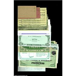Stage and Theater Money, and other Miscellaneous Items.Included are 39 pieces of miscellany, mostly stage and movie money but also two notes advertising burlesque entertainment and 4 ATM test notes. An interesting mixture that is sure to please the collector who takes the time to look. 39 items Important notice: We expect to be auctioning lots at the rate of 200-250 per hour. Sometimes eBay Premier live bid software cannot keep up with that pace, so we strongly recommend that you place a realistic proxy bid now as insurance to avoid disappointment. Also please note that all Heritage/CAA lots purchased through eBay Premier carry a 20% Buyer's Premium. Please make sure you read the Terms and Conditions.