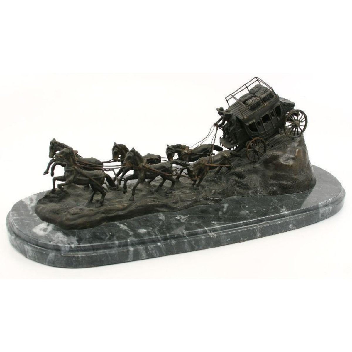 Small Size: 8.25†H X 23†L - This is not an original Frederic Remington sculpture for if it was, it would be worth a great fortune. This is a masterful lost-wax bronze molded sculpture masterfully recreated in the Frederic Remington style. There are many steps in this intricate process. If interested, you may read about this process here: https://en.wikipedia.org/wiki/Lost-wax_casting
