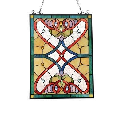 Created from over 150 pieces of hand-cut stained art glass & crystal & glass beads, wrapped in copper foil. 18" W X 25" H.Â