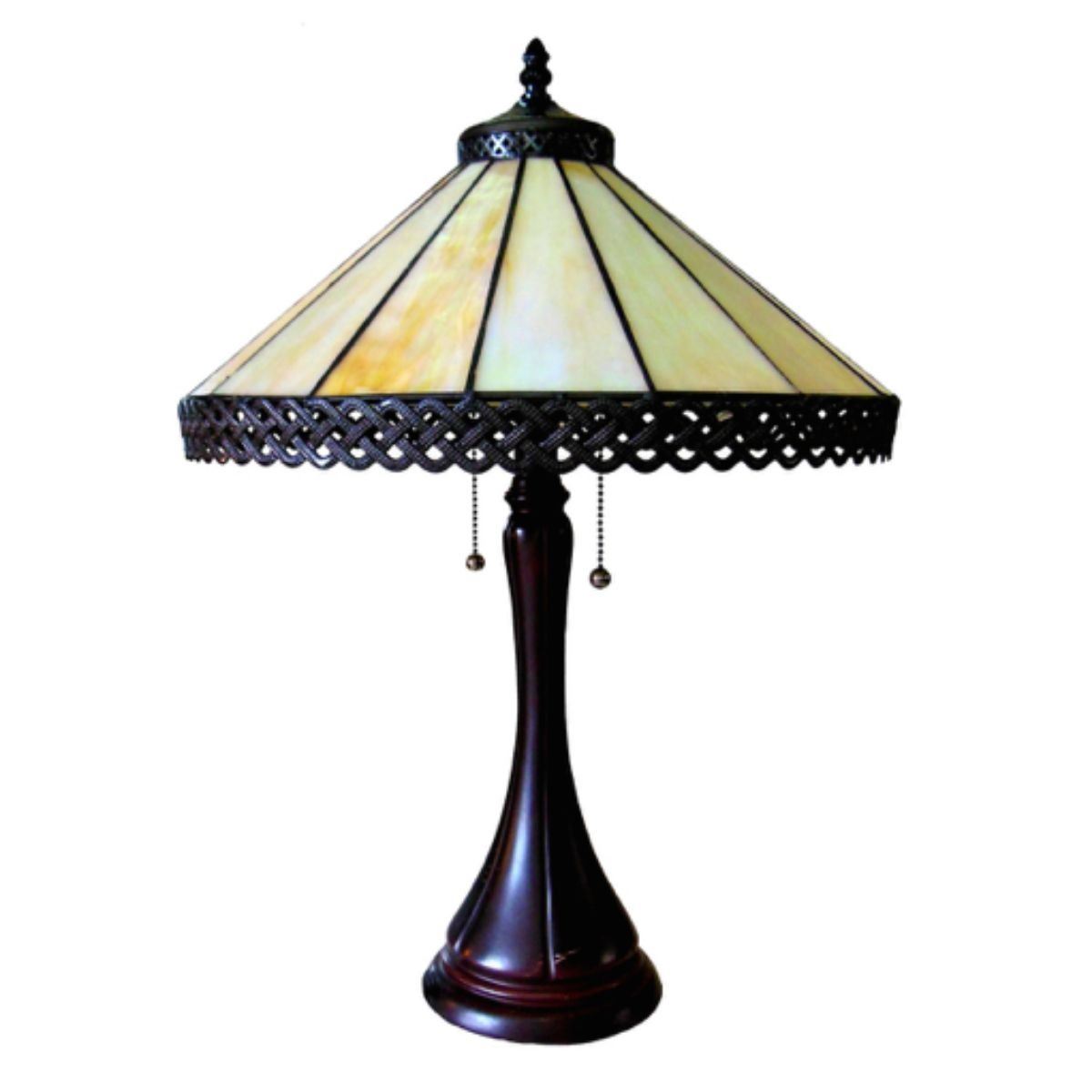 Art glass 2-light table lamp, created using 16 pieces of stained art glass, wrapped in copper foil with a dark antique bronze finish. 23" H X 16" W.Â