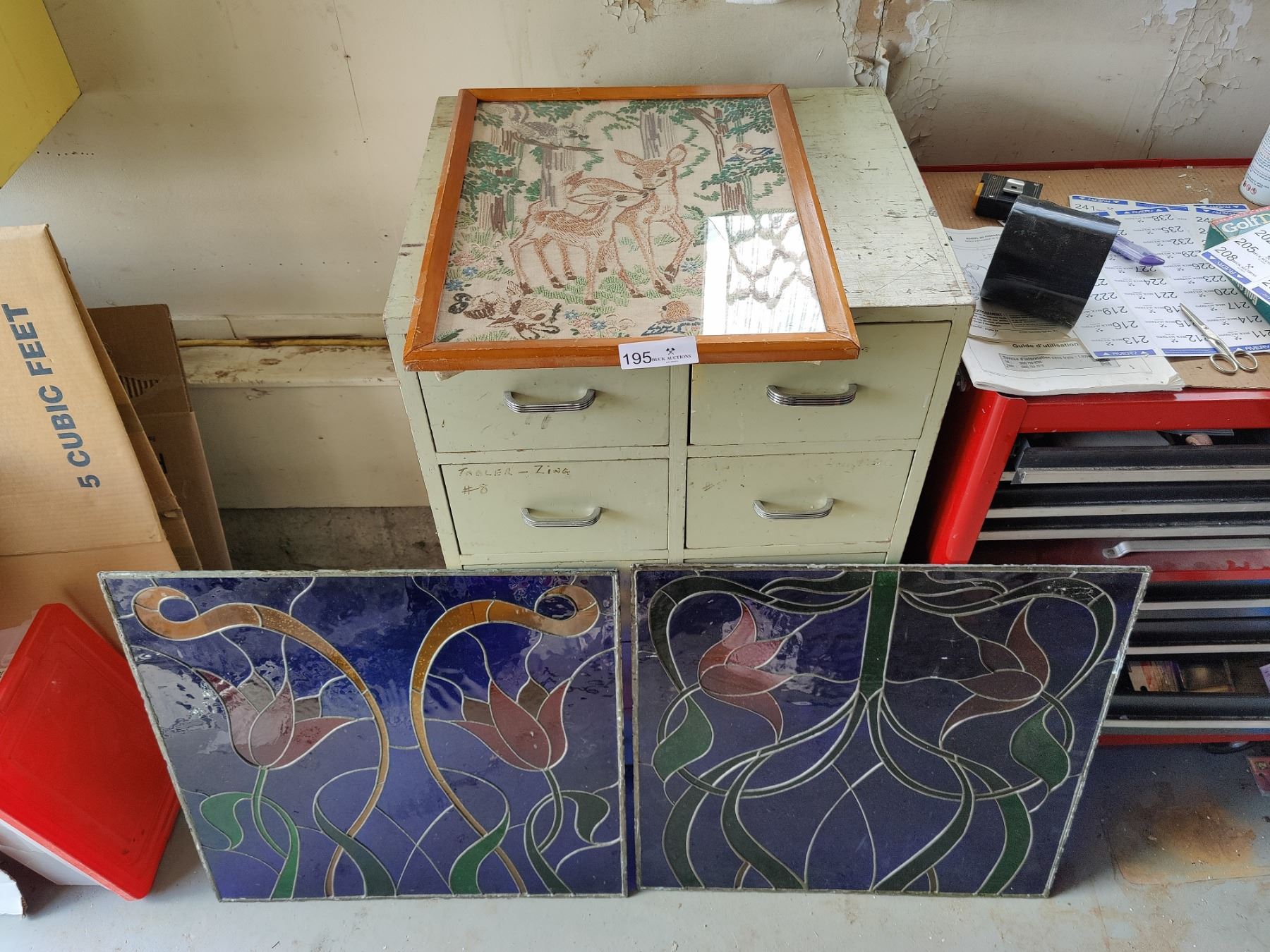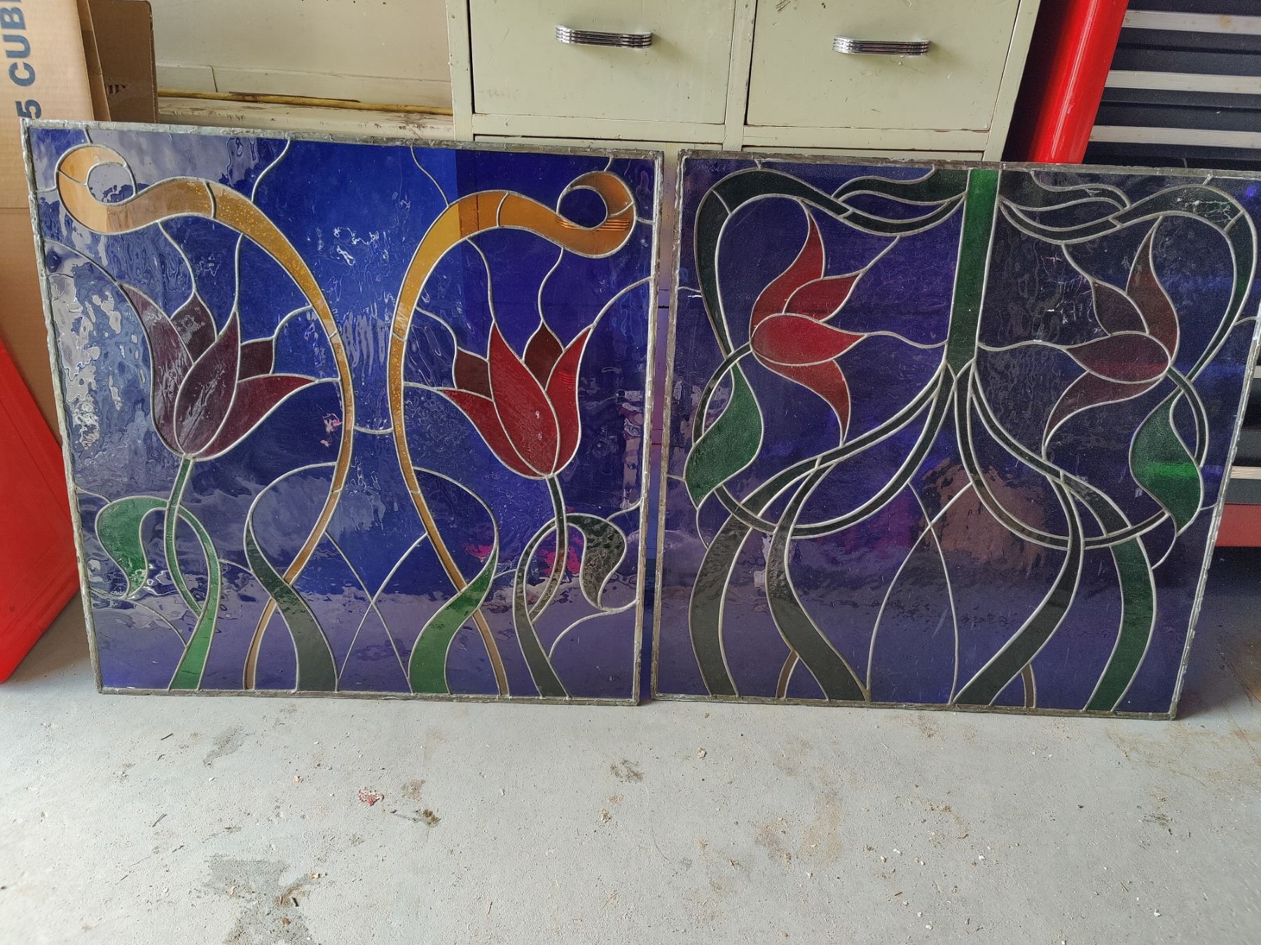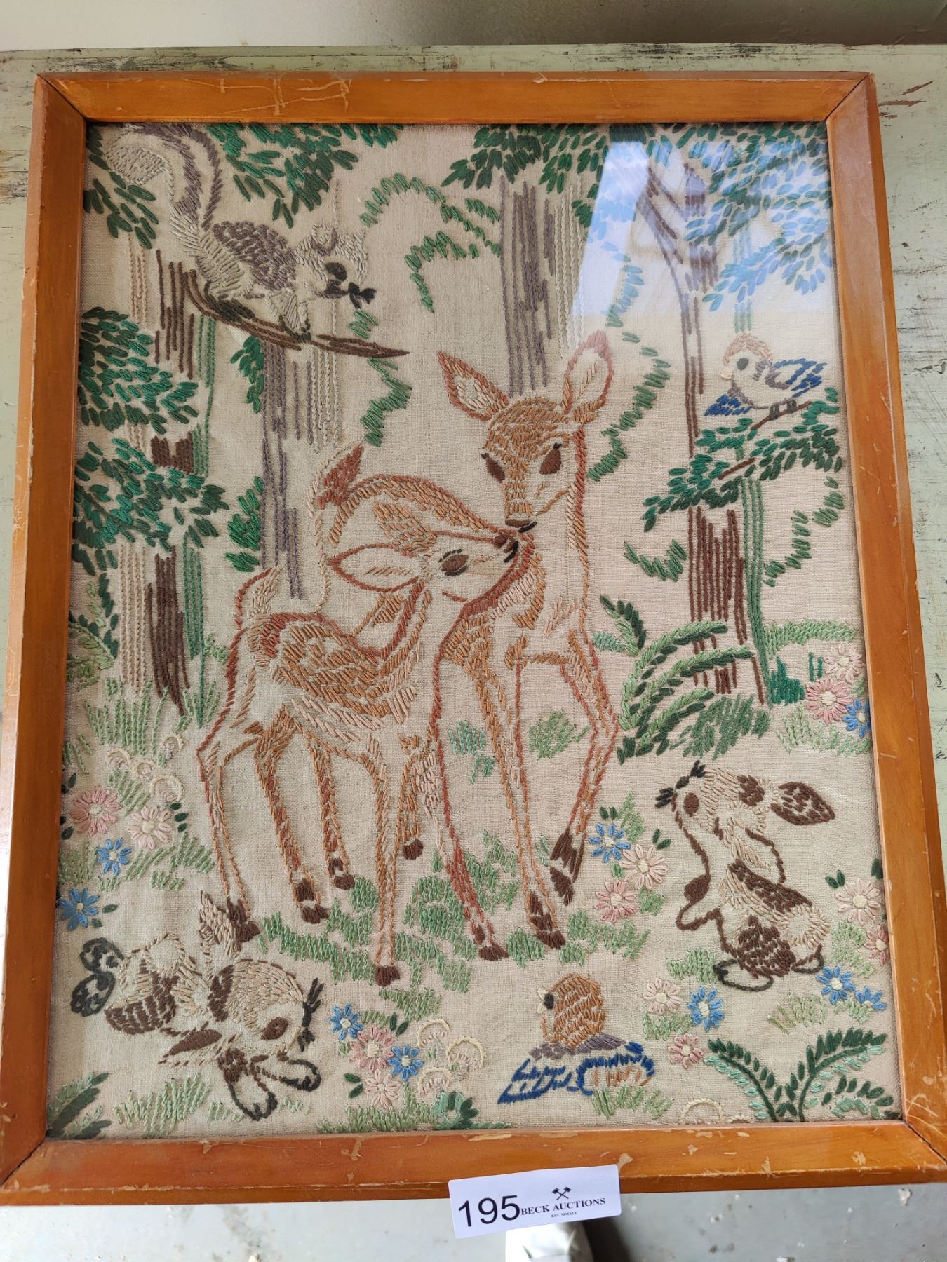 Two pieces of stained glass style resin art panel. Embroidery of deer is 15 and 1/2" by 19"
