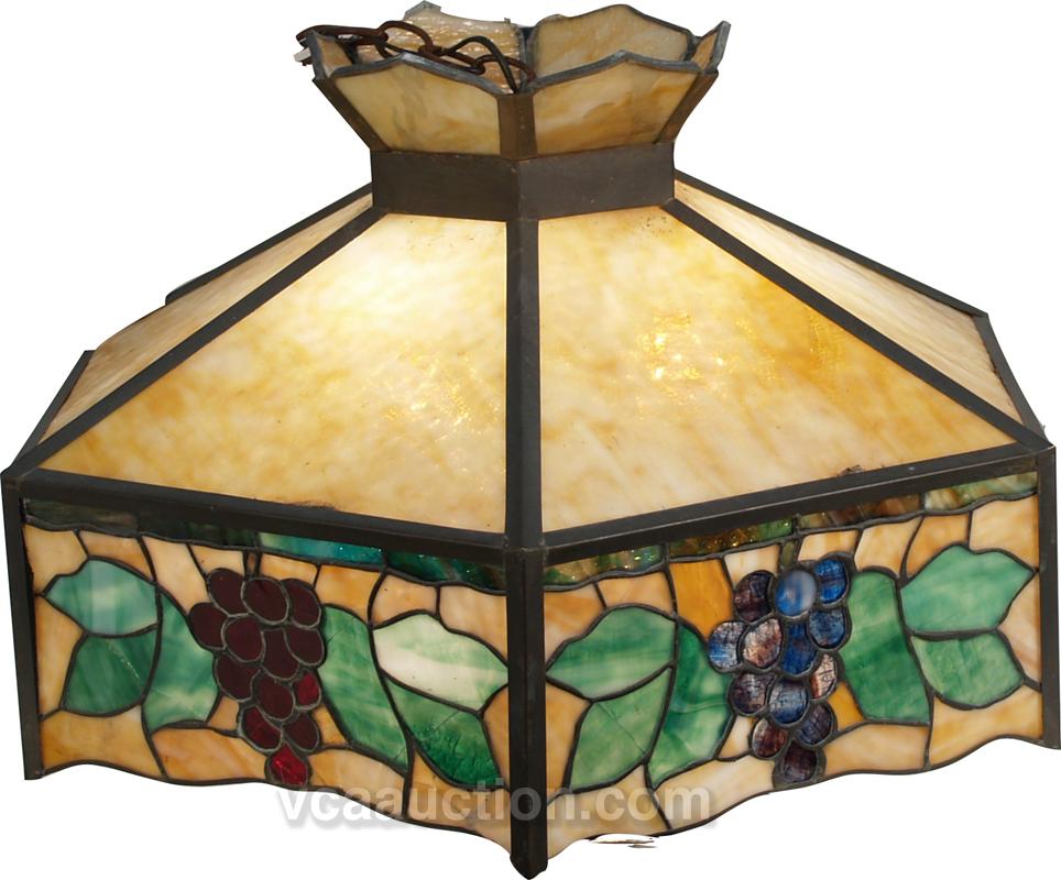 Stained Glass Hanging Chandlilier Shade w/ grapes, octagon shaped - approx. 22" x 22"